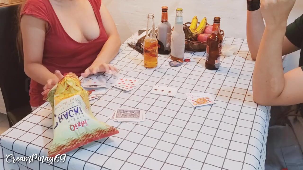 Card games and drinking beer lead to sex bet. two friends