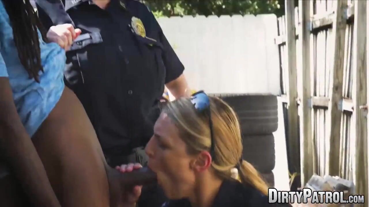 Policewomen Maggie and Joslyn can make any man cooperate when they shove his head into their pussies before taking hold of his cock!