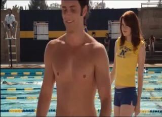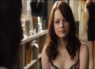 Here is Emma Stone showing us her sweet cleavage and hot legs, and enjoys some fake sex scene from Easy A.