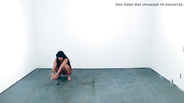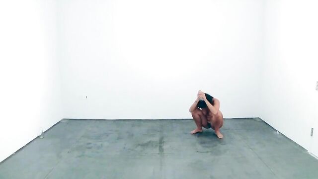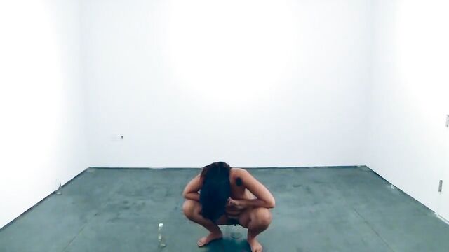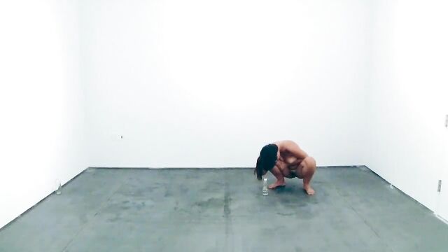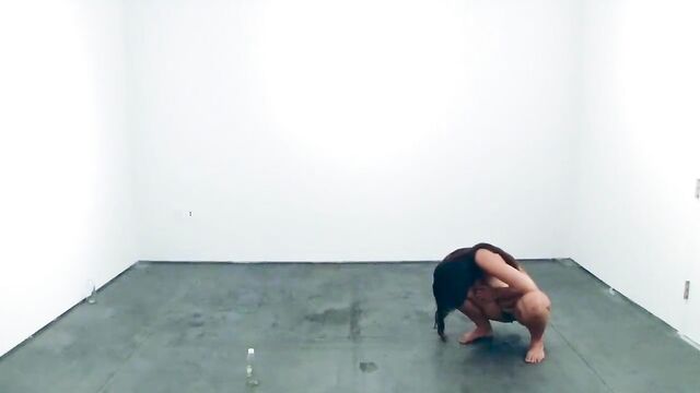 Performance art where a woman drinks water and pees on the floor for half an hour. Clearest shots are towards the beginning.