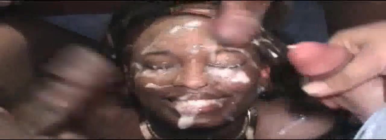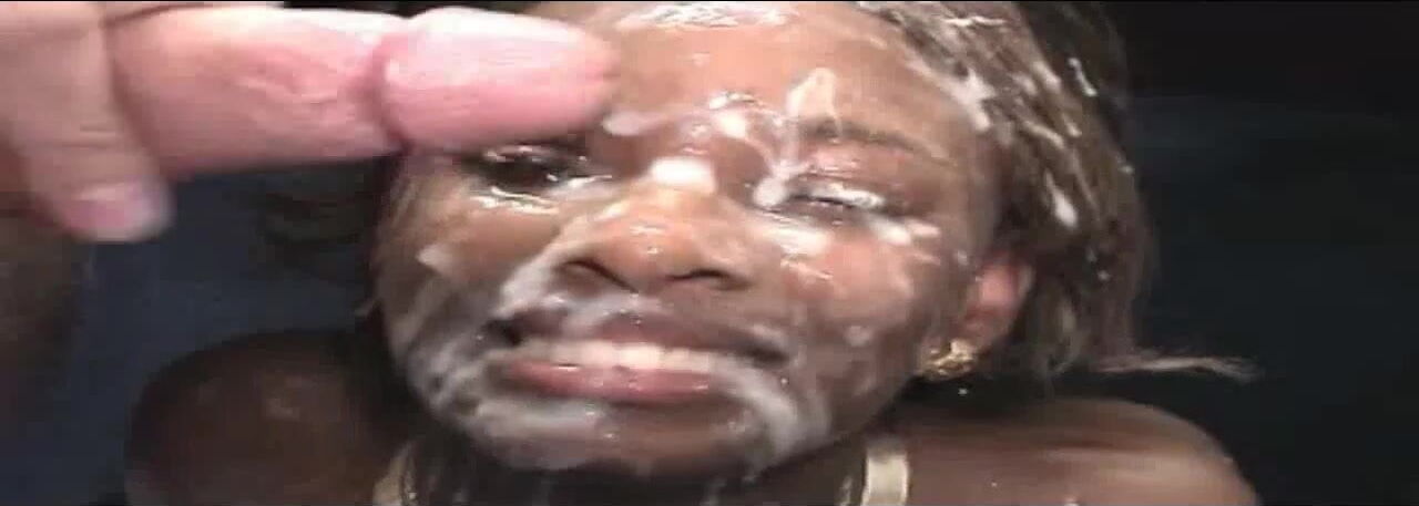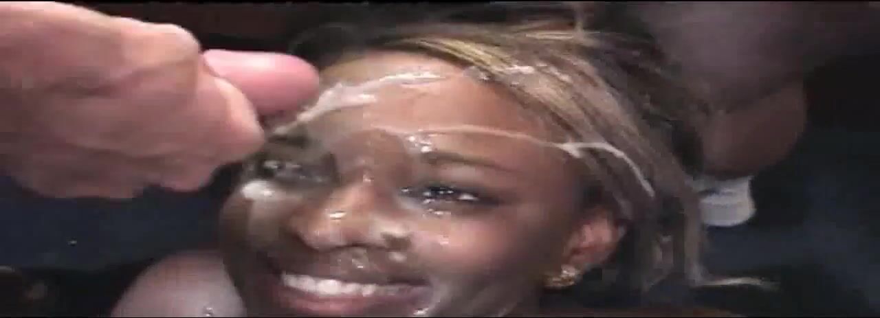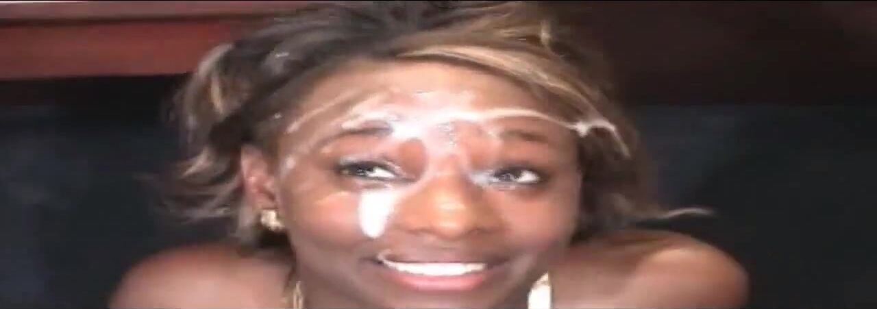 black girl gets lots of cum on her face