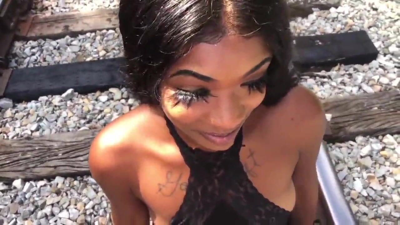 Ebony petite chick likes white cock golden shower interracial outdoor couple