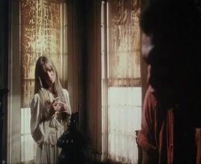 Susan George having sex with him for a while before sitting up topless for a bit and then going back to having sex with him again on her back.