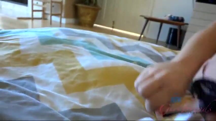 Scarlett is very cute and looks like the girl next door. She kneels on your bed to introduce herself a bit before she lifts up her top. Her boobs have piercings that are very fitting.
