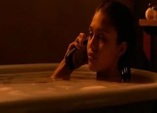 Jessica Alba almost exposing a breast as she removes a bath robe and gets into a bubble bath.