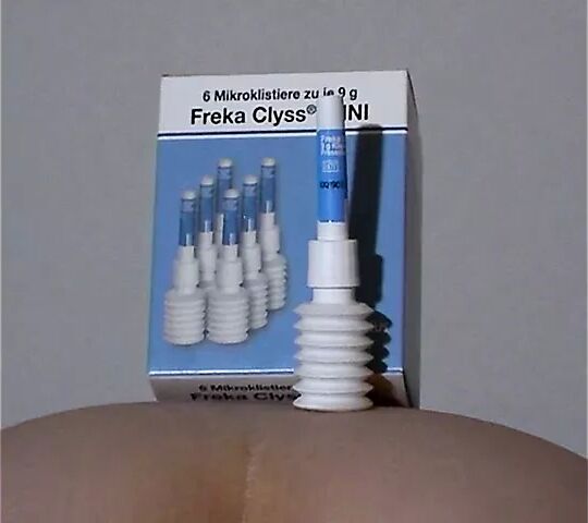A girl gets medical glycerin enemas and a tea enema with a syringe.