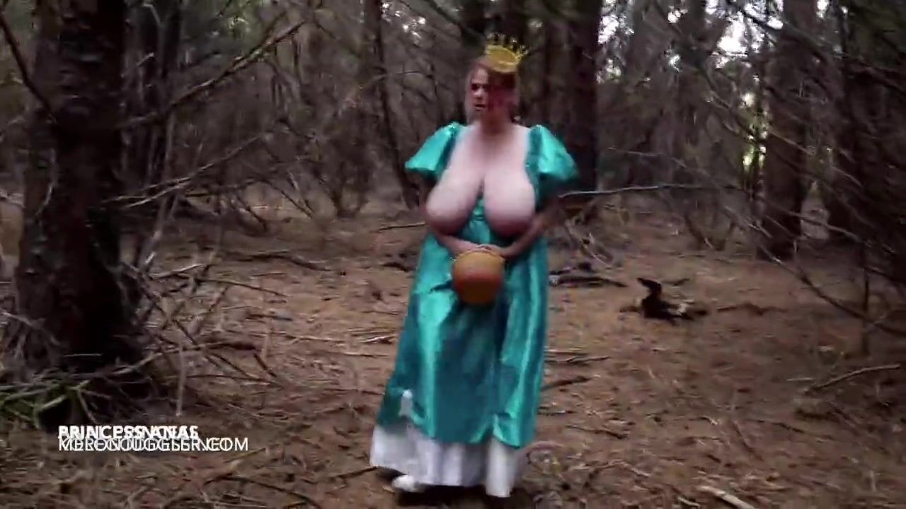 The fake lumberjack takes a lost huge tits princess home, she blows his cock he pisses on her and deep fucks her arse