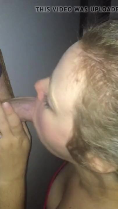 Wife sucking at gloryhole and gets cumshot on her tits