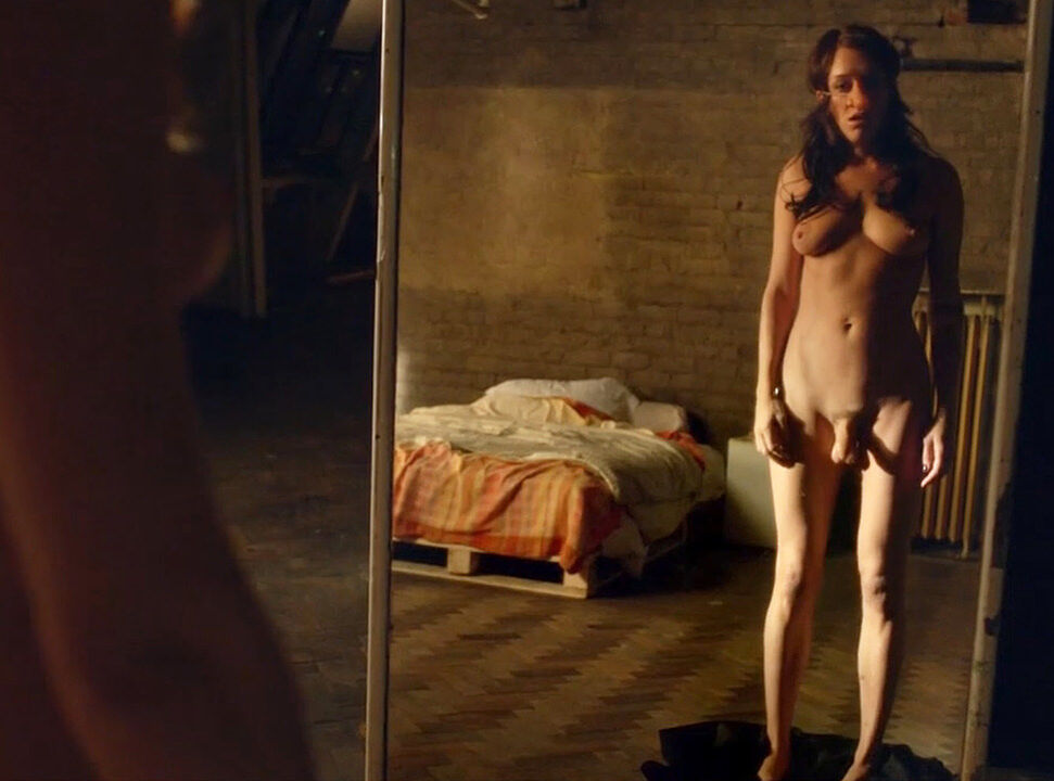 Chloë Sevigny exposes her fully nude body with a fake penis. She is standing in front of a mirror, takes off her robe and watching her transexual body. We get a clear look at her nude boobs.