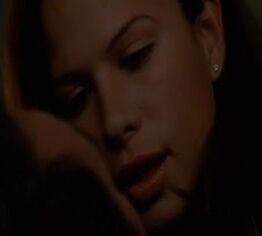 Rhona Mitra lying in bed while wearing a black bra next to Kelly Carlson as a guy talks to them before Kelly gets up topless and covering her breasts and talks to her too from Nip Tuck.