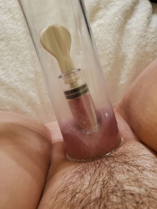 Figuring out all the different configurations to make my pussy as big as possible. This is the start of the session Jan 7, 2022; pussy skin is still stretched from 6 hrs pumping both days before.