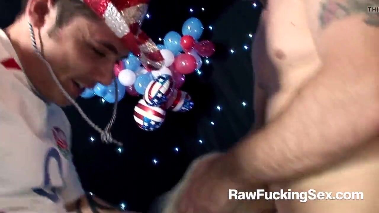 This All-American Babe Amy Azurra with enormous titties walks into the dark VIP room where two British studs await her.