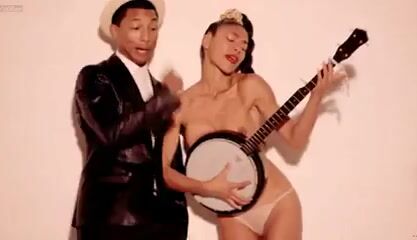 Emily Ratajkowski, Jessi M'Bengue, and Elle Evans. Brunette. Blonde. Black and Ebony. Babes. Big Boobs. Celebrities. Dancing. Lingerie. Nipples. Tits. Robin Thicke, Pharrel Williams.