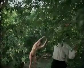 Melanie Griffith nude as she stands beside a tree and a guy talks to her, her breasts and bush in view. From Ha-Gan.