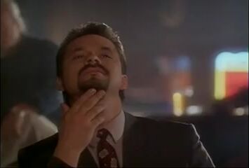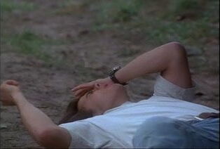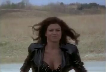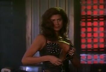 Lara Daans wearing a white bra and thong as she spreads her legs quite a bit while doing a stripper routine on a chair on a stage. Then we see Lara Daans nude in threesome sex scene. From Electra.