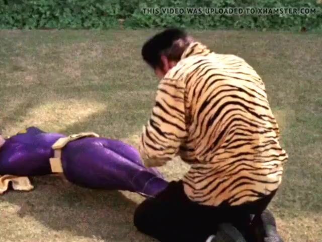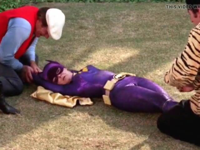 Batgirl (Yvonne Craig) was captured and pinned to the ground. Two henchmen holding her down while she squirms and struggles!