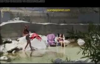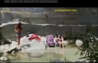 Jasmine Waltz in a hot deleted scene from Poker Run movie shows her big silicone tits. She is sitting topless in the chair and talking with Debra Hopkins who wears the only bra.