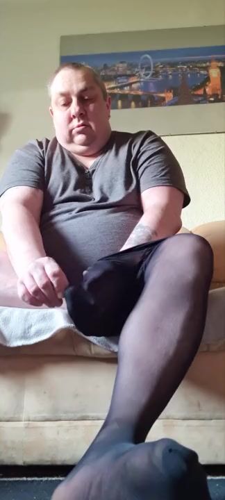 Husband putting on snag tights 50 deiner because hes a faggot
