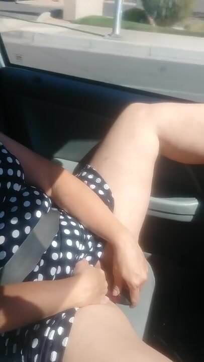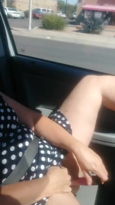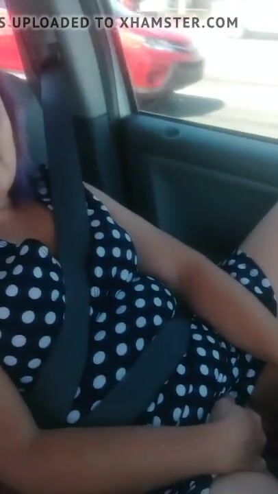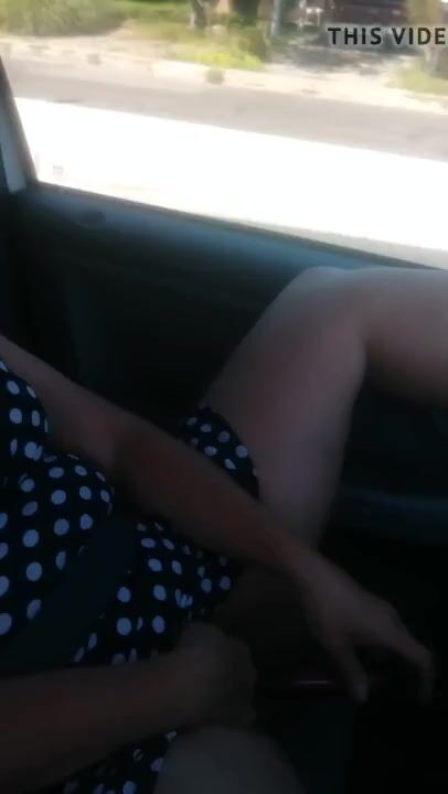 Amateur slut uses a vibrator and makes herself cum while being driven through town in her car. Plenty of scenery and other cars visible out the window.