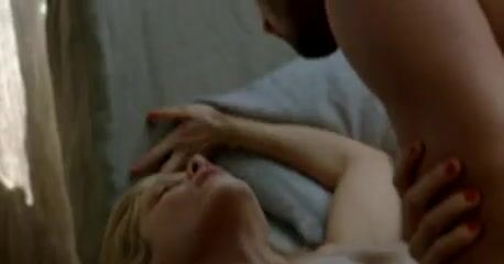 Elodie Bouchez naked completely on a couch, showing her breasts and bush as a guy moves the sofa and then climbs on it to make out with her. From Happy Few.