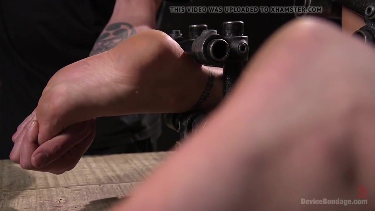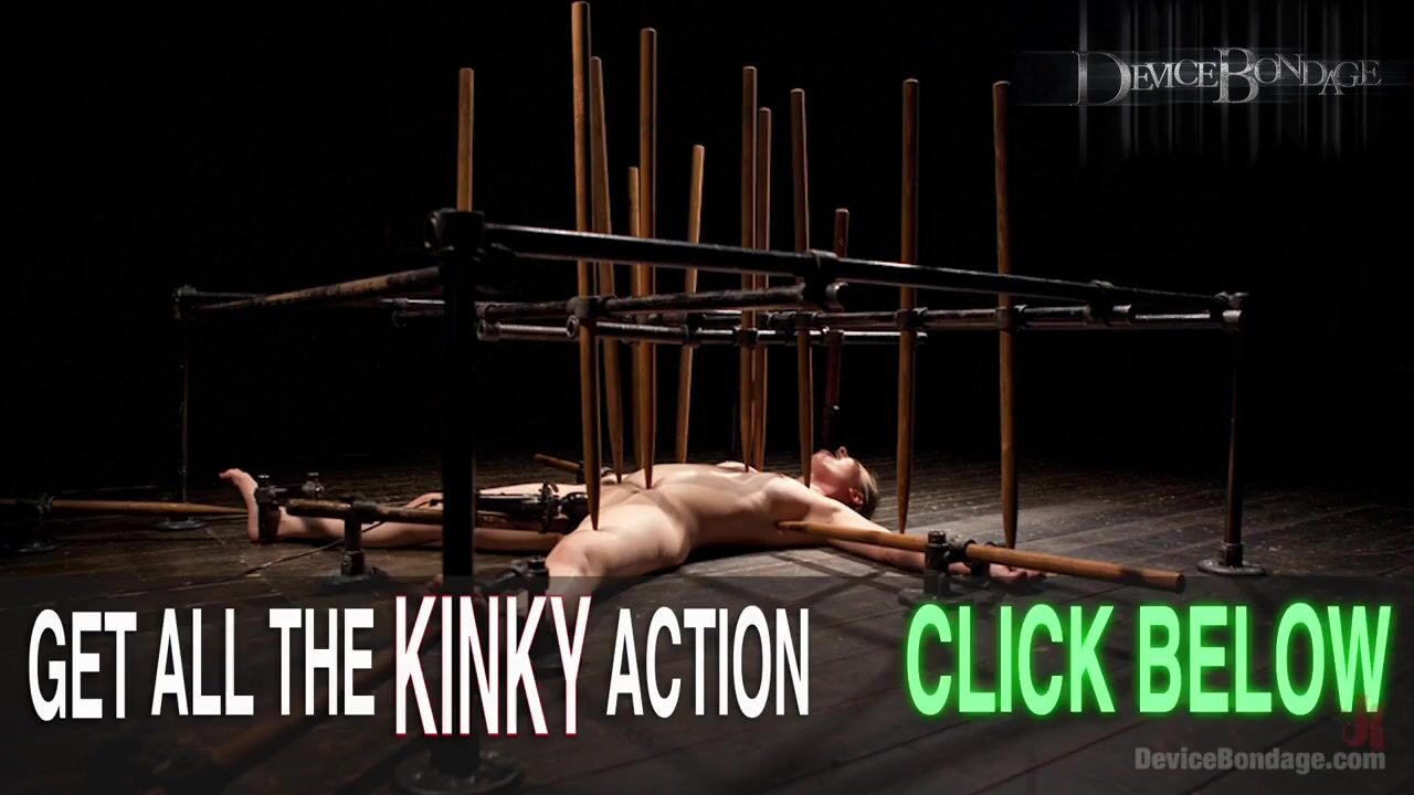 Busty brunette Karlee Grey squirts in restrictive metal bondage.