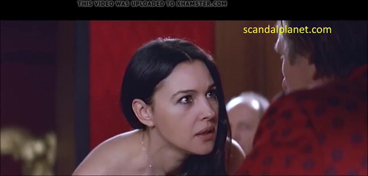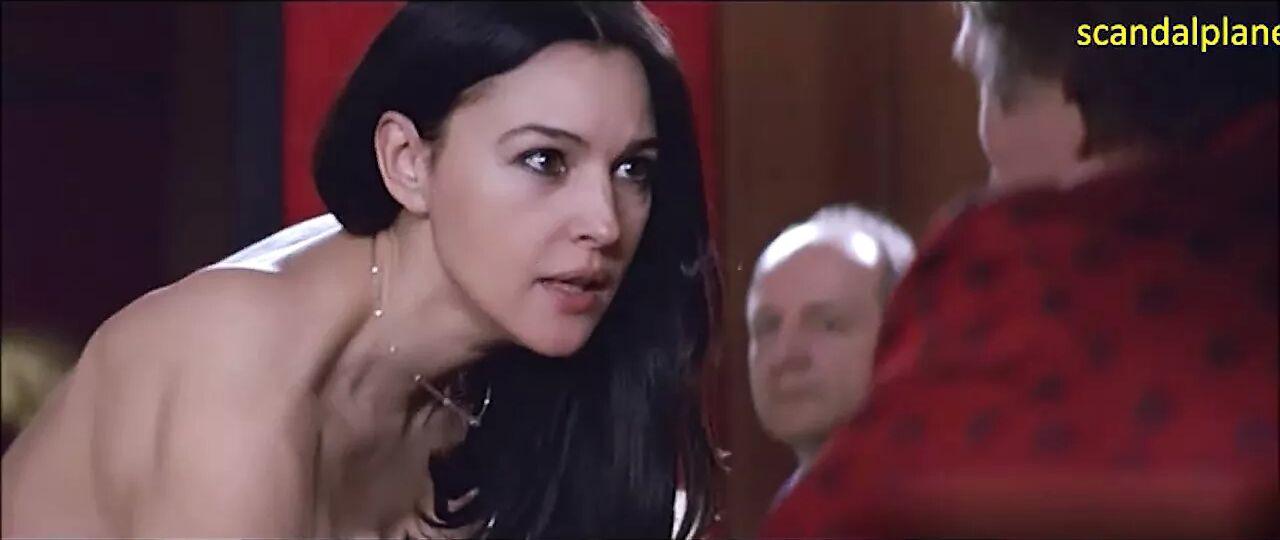 Several men in the room staring at her busty boobs and she keeps a hand dress and does not allow the breasts to spill from the eyes of the beholder. Watch Monica Bellucci in Combien Tu Maimes movie.