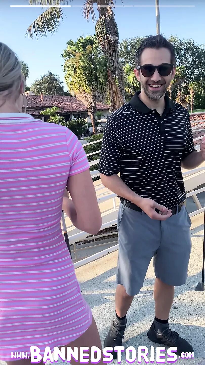My buddy Donny and I meet a gorgeous Gabbie Carter at the golf playground. After we noticed she doesn't wear any panties sweet chit chat turned into public flashing and fuck for a social media story.
