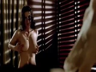 Soraia Chaves topless as she leans over a guy.She then sits down to rub her breasts while reaching her right hand between her legs and masturbating as the guy watches.From Call Girl.