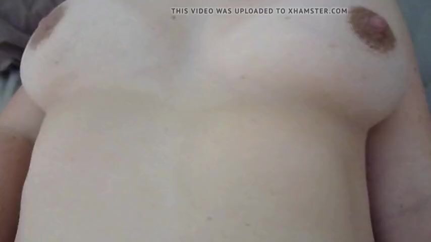 Me and my wife both squeezing her big tits. Hairy pussy too.