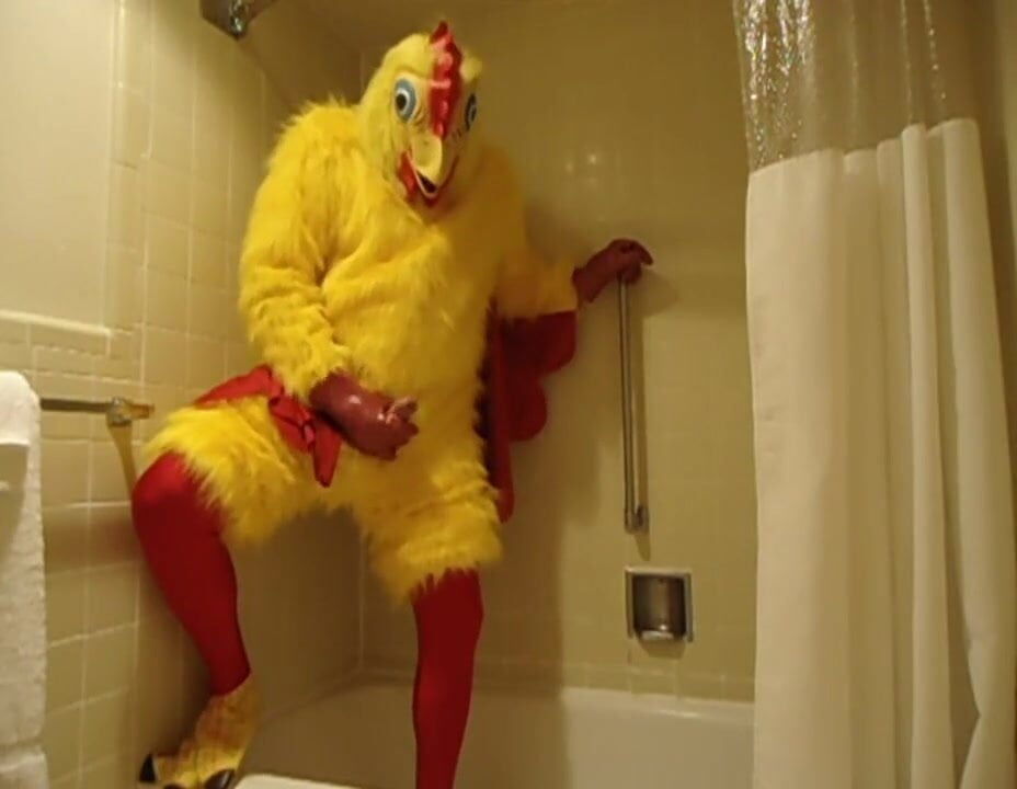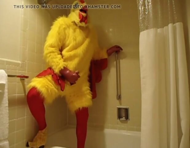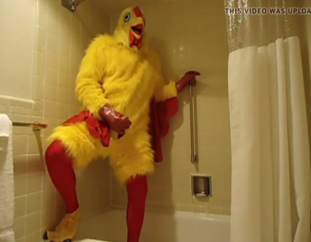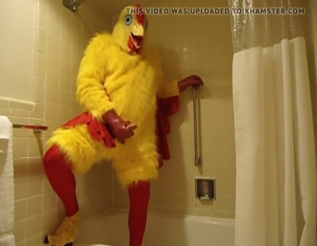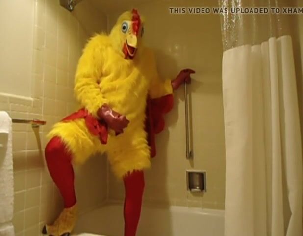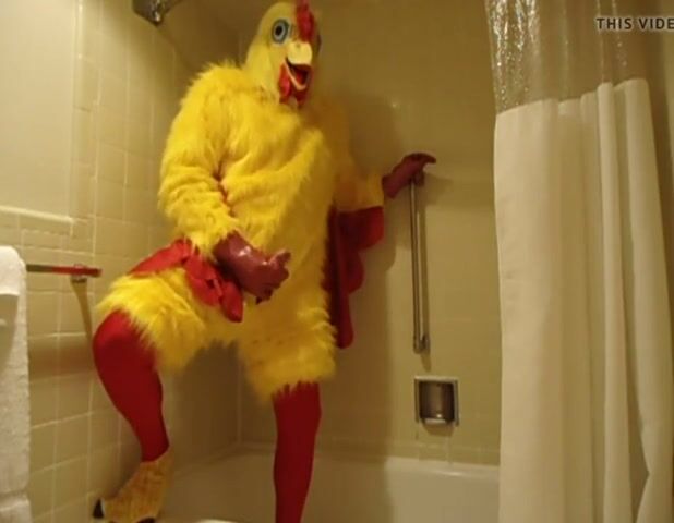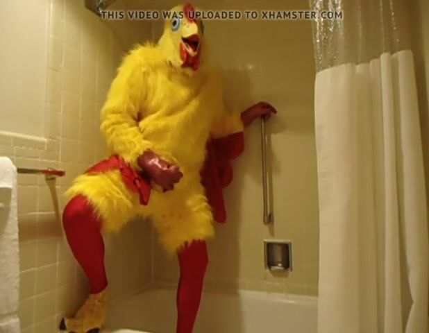 Me in my Chicken Costume just masturbating in the shower with my big rubber chicken hands