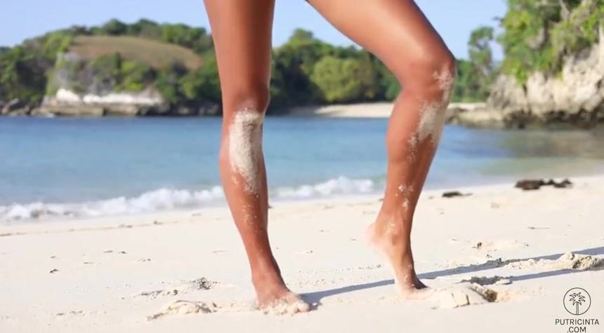 Exotic babe, Putri Cinta, taking off a micro bikini and sucking dick