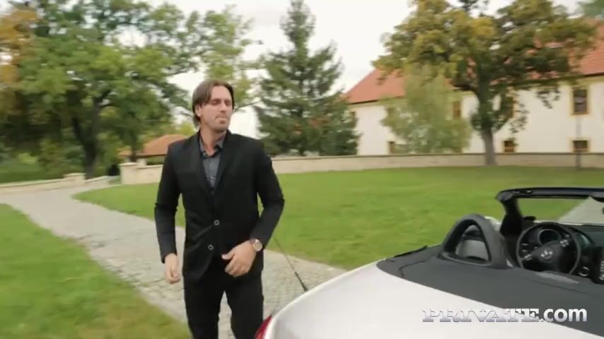 After heading back to a mansion in a fancy sports car this slut sucks on the cock of her rich hung stud, giving him some sensual deep throat .