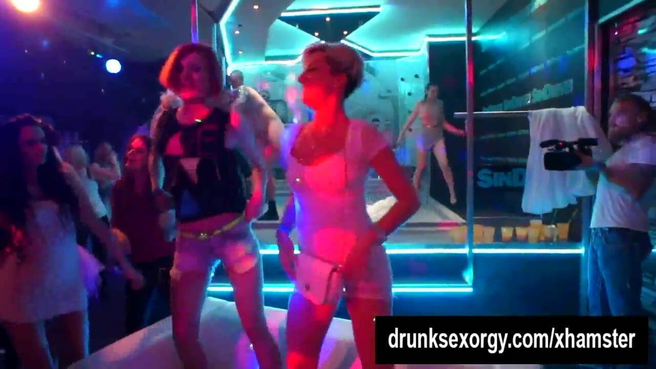 Seductively party lesbians licking their bodies and masturbating in public