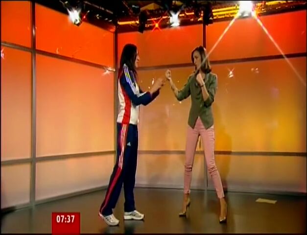 Sally Nugent shows her long legs in tight jeans