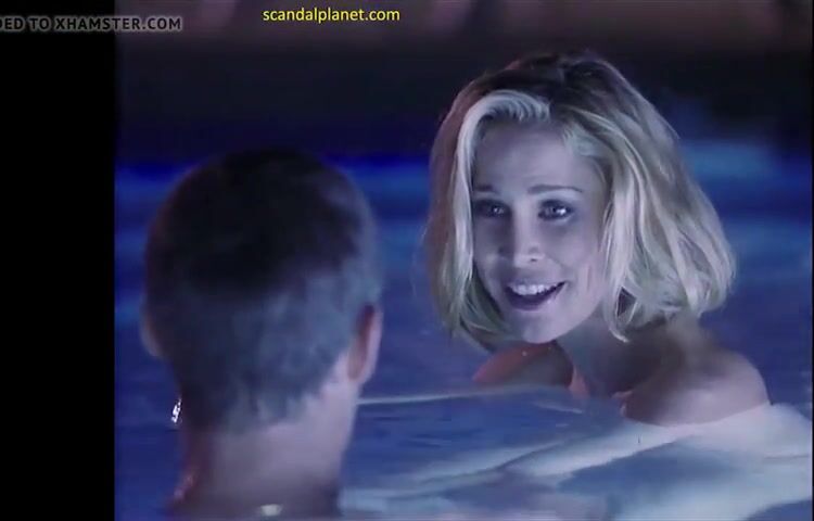 Kathleen Kinmont exposes her large natural breast in the swimming pool. She removes her dress and steps into a pool with a guy. We have a nice view of her nude busty boobs and perky nipples.