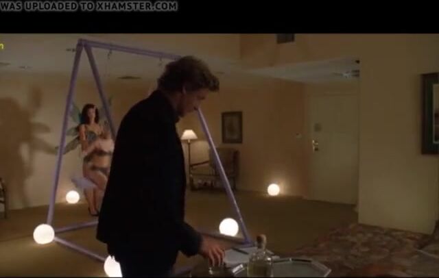 Pollyanna McIntosh and Natassia Malthe show their beautiful bodies while Pollyanna pushes Natassia on a swing in a room while a guy looks on. Then, they start to kiss each other and we get a good look