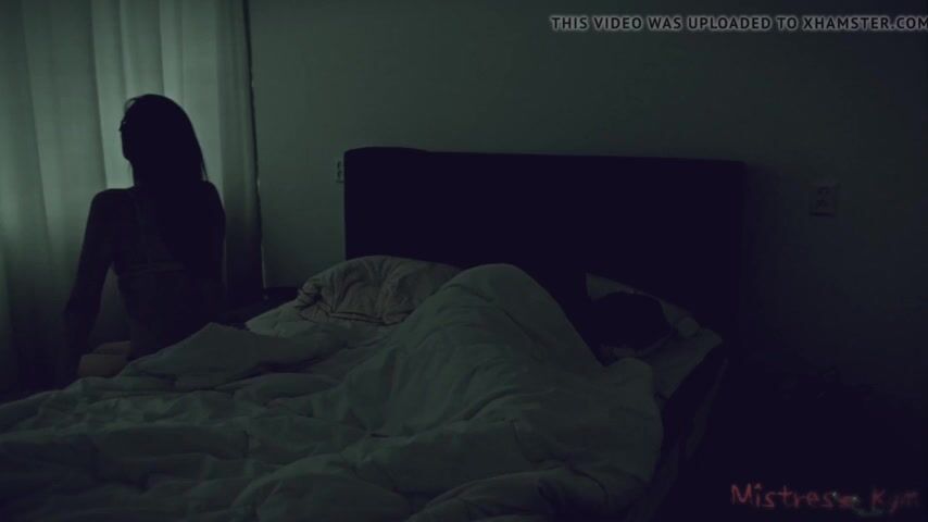 After a long night, Mistress Kym wakes up and enjoys facesitting her submissive while he is locked in chastity, handcuffed and leashed. His senses are totally deprived.