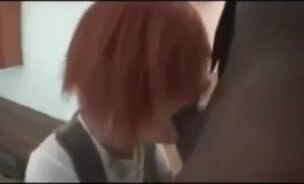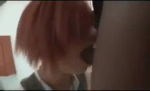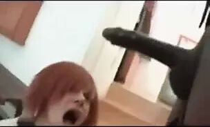Redhead taking very big black cock all the way in