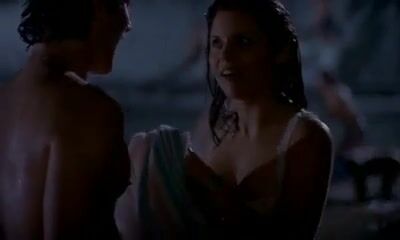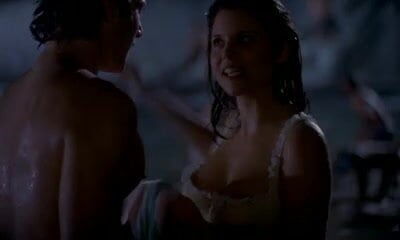 Comes out of lake in her underwear. non nude. babes. celebrities. brunettes. big boobs. nipples.