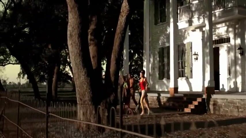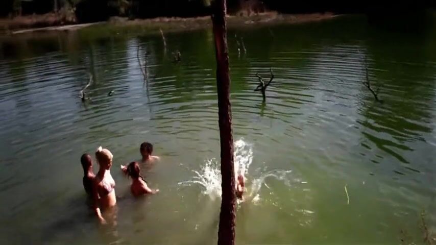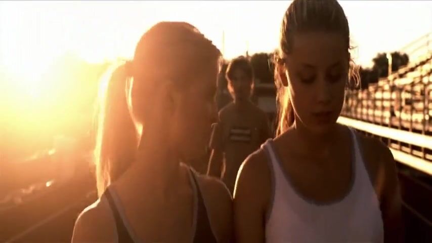 Amber Heard undressing at the edge of a river, ending up in her panties and bra as she dives into the water where a group of people are swimming. From All the Boys Love Mandy Lane.