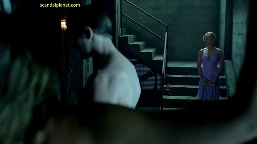 Natasha Alam in a hard and vigorous sex scene shows her fully nude body. She is tied up around her wrists and hanging on some ropes in a basement. A guy fucks her very hard until they are interrupted.