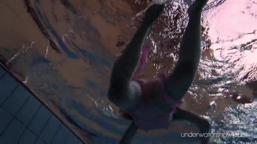 Czech teen Roxalana Cheh nudist in the public swimming pool swims and strips