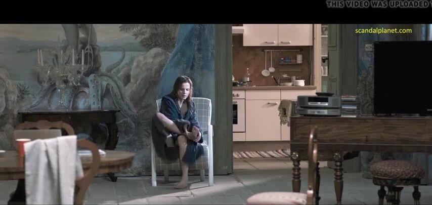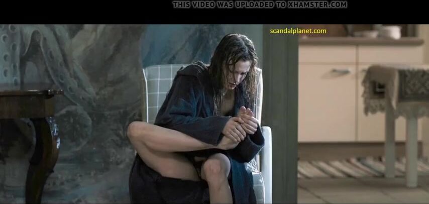 Sylvia Hoeks exposes her untrimmed pussy and sucks her leg`s toe. She is sitting in a chair, spread her legs and begins to suck her leg fingers. Her bathrobe is wide open and we see her hairy bush.