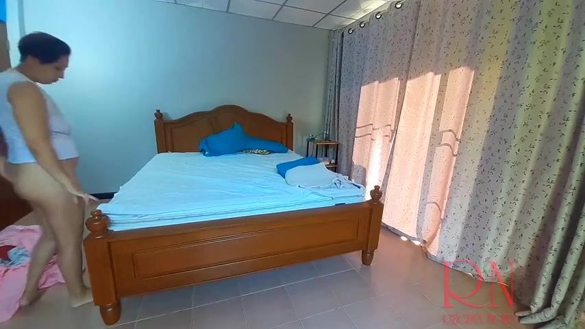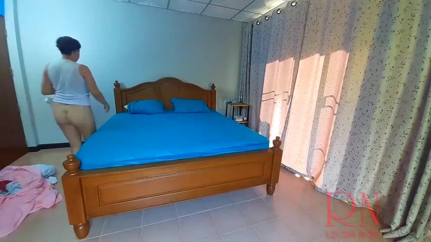 A naked housewife changes sheets, pillowcases, blankets in a bedroom. Depraved housekeeper works without panties. Naked maid! My bedroom is always clean. The owner of the house makes the maid nude