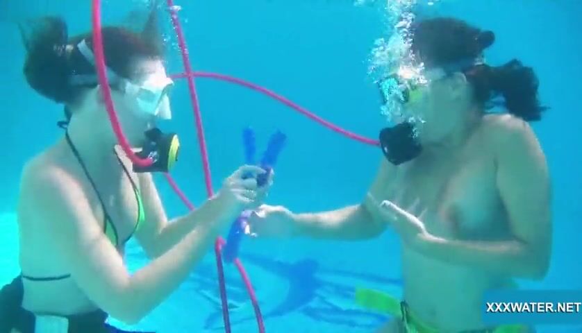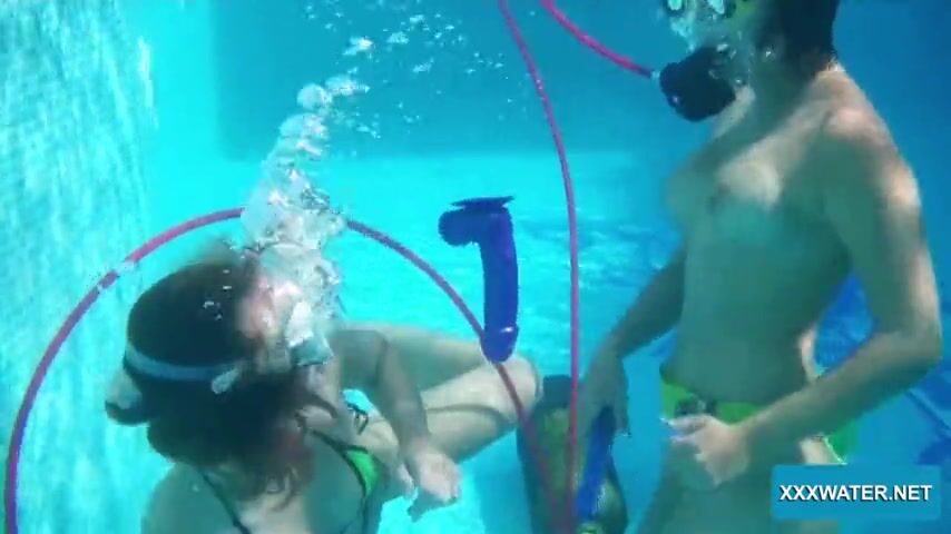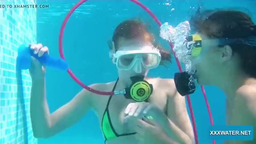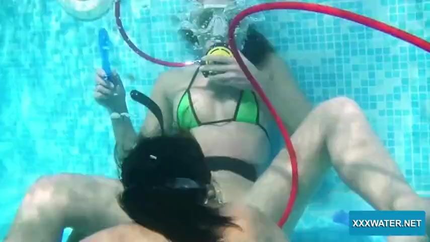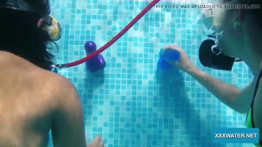 Swimming pool lesbian babes Minnie Manga and Candy lick kiss and suck on dildos! XXXWATER.NET