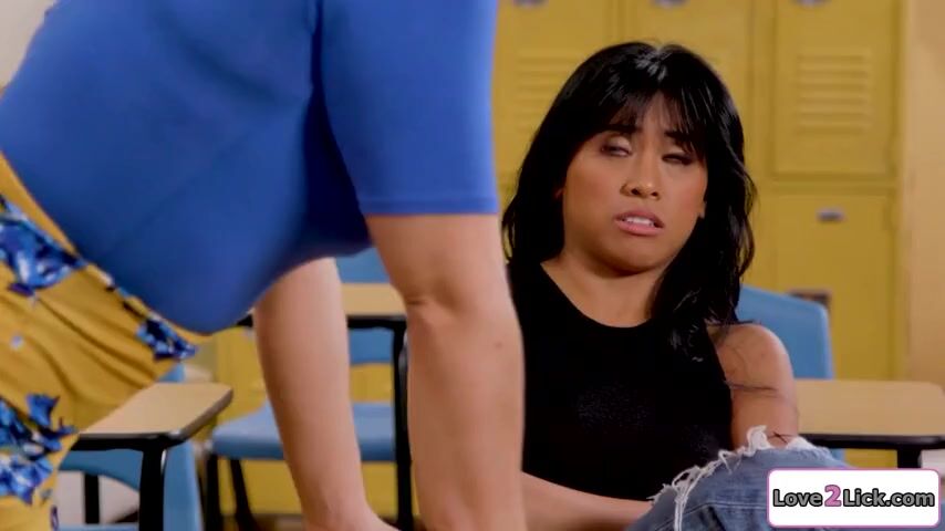 Busty teacher seduces her rebellious asian student and dominates her.The milf spanks her and then rims her.The brunette licks her pussy and they 69