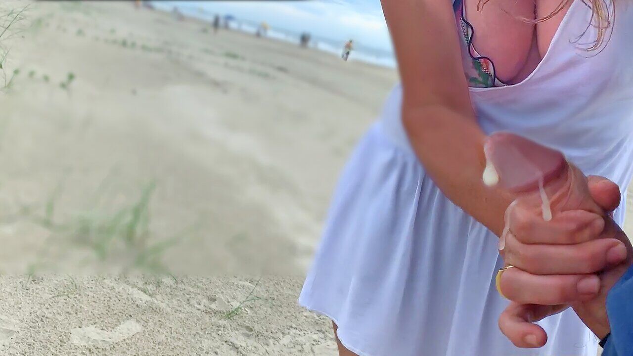 MILF on the beach liked the fat dick of a stranger in swimming trunks and did not calm down until she brought him to orgasm in front of everyone