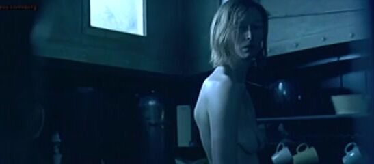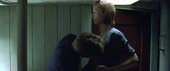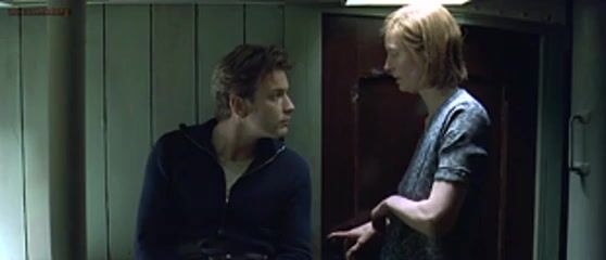 Tilda Swinton unbuttoning her dress to reveal her breasts and having a guy suck on her nipple before they end up having sex with him on top. From Young Adam.