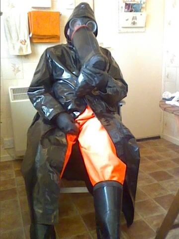 A very enjoyable wank in my rubber and oilskins with a nice cum over a wellie to finish.