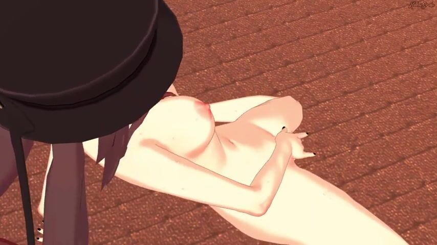 Hu Tao rubs and fingers her pussy. She masturbates until she has a squirting orgasm. Genshin Impact Hentai.